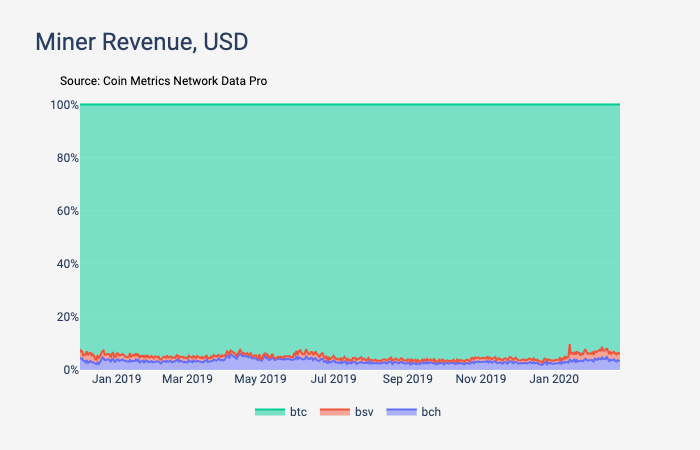 There have been many forks of Bitcoin over the years, but Bitcoin still remains the dominant chain by most measures. Compared to Bitcoin Cash (BCH) and Bitcoin SV (BSV), the two largest Bitcoin forks, Bitcoin accounts for about 94% of the aggregated miner revenue (i.e. block rewards + fees).