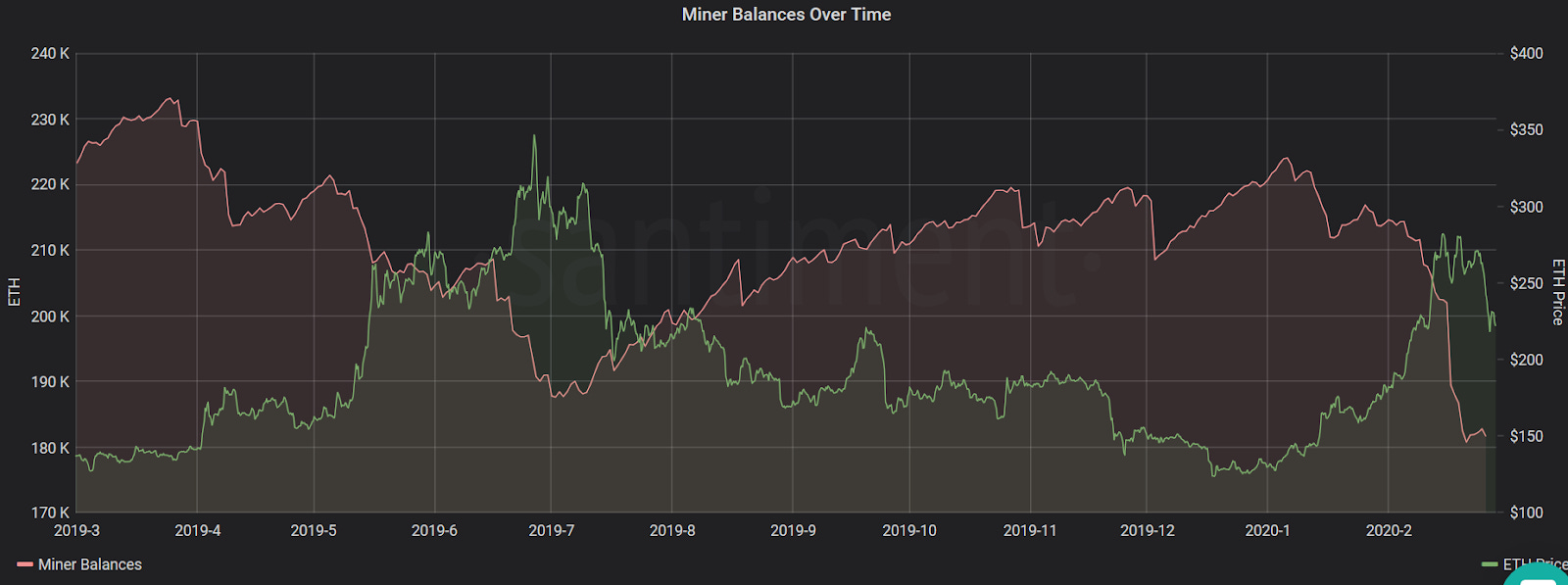Since February 9th, ETH miners have offloaded more than 30,000 ETH, seemingly in unison with Ethereum’s short-term market conditions and its ongoing correction. At present, Ethereum miners are sitting on a 15-month low 181.6k ETH - levels that were last seen around late October, 2018.