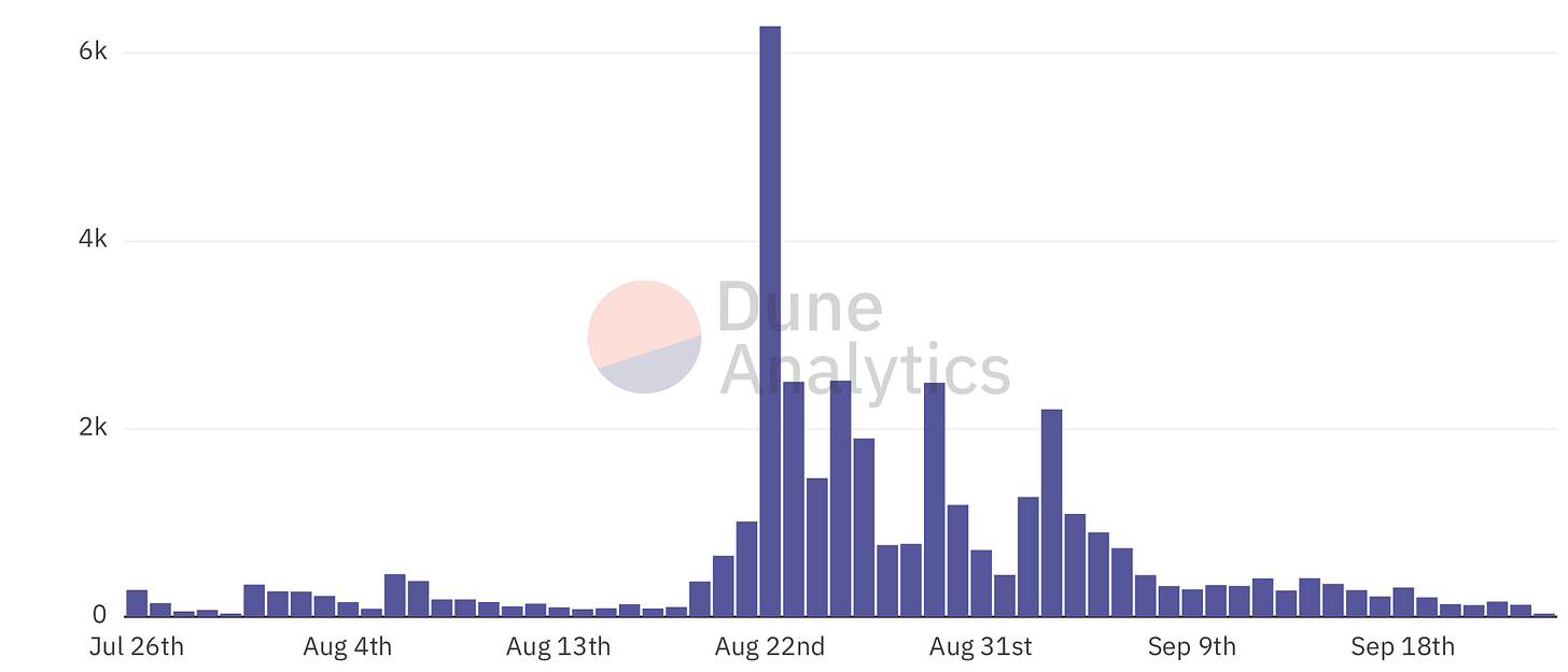Whereas NFTs are great at onboarding mainstream users to crypto because they're fun and easy to understand, DeFi is more catered towards financial elites who understand trading vocabulary. A total of 240K unique wallets bought or sold at least one NFT on OpenSea in August.