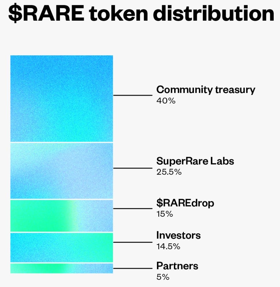 Last month, SuperRare airdropped 150M $RARE tokens, 15% of the total supply, to the artists and collectors who have used the marketplace. This is the first step in their long-term plan to decentralize curation on the platform. The chart below details the distribution of the new token.