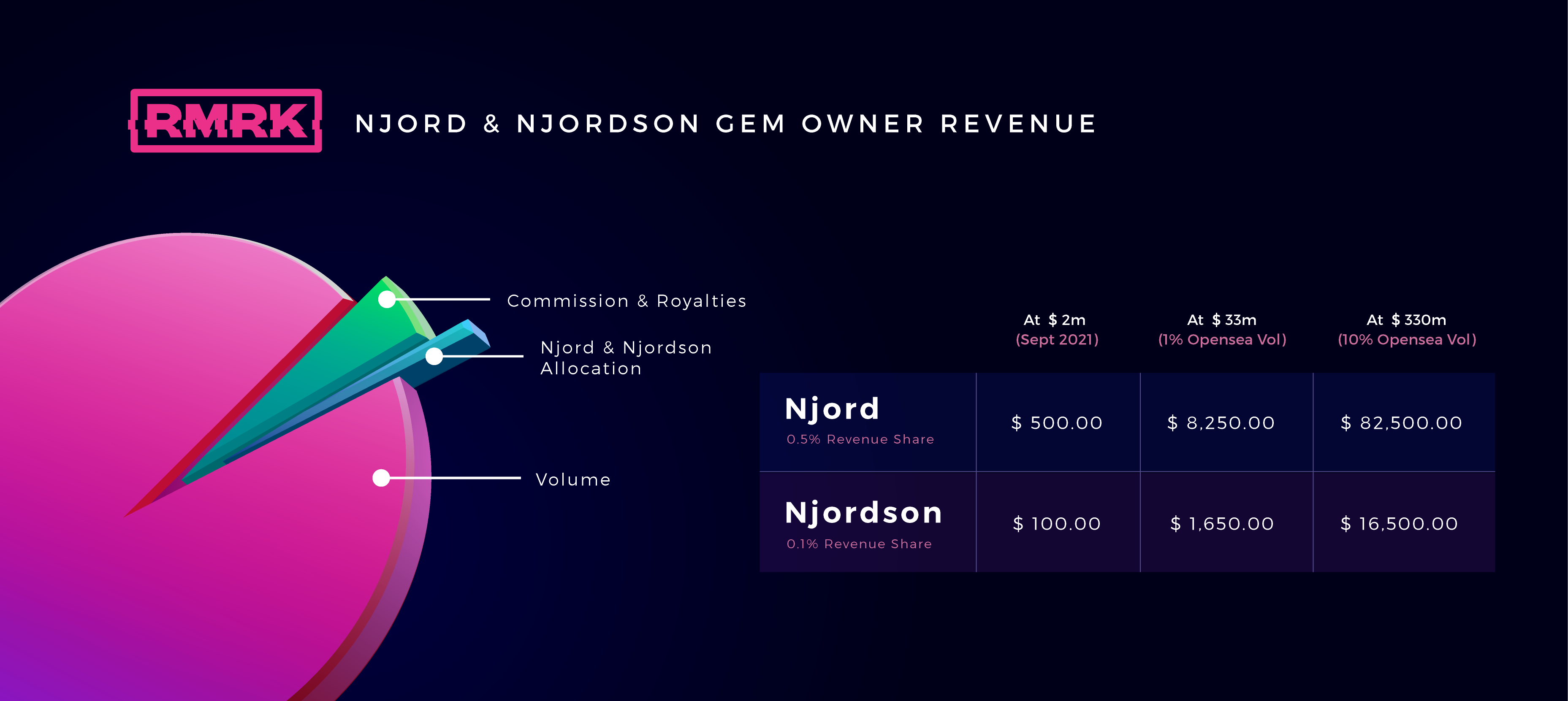 These volume figures are important, in particular because holders of some of the Kanaria, which were used as a fundraise mechanic for the RMRK Association, receive revenue share from the project's staking operations and the commission and royalties earned by these marketplaces and launched products.
