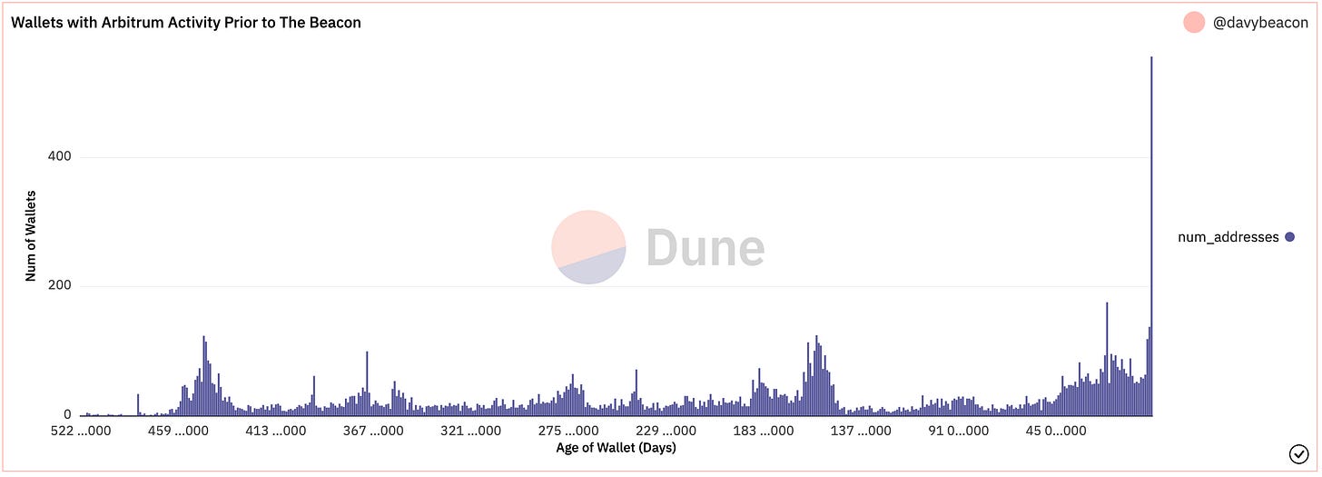 The Beacon is a free-to-play action roguelite RPG, built on Arbitrum One. A game prototype was launched on November 25, 2022, and was available for 22 days. During that period, the game registered over 40k accounts, over 20k of which had paid for and minted NFTs. And of the 27k paid accounts today, over 14k of those had no activity on Arbitrum One prior to their first mint in-game. This shows that good games have the potential to drive many net new users to their native blockchains.