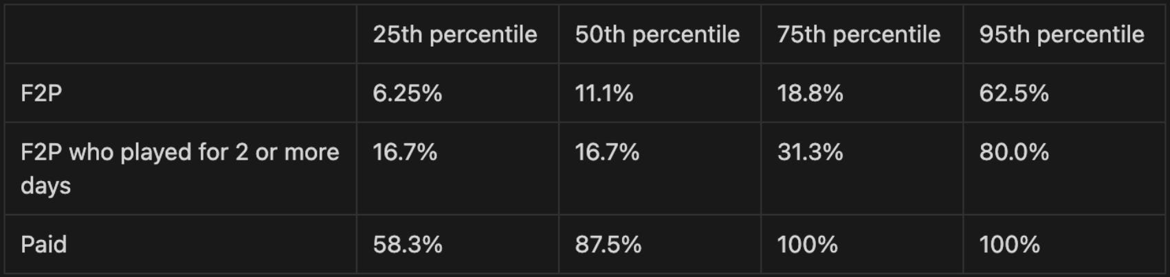 Paid accounts - minters of The Beacon NFTs - displayed high user retention, over 25% of whom played the game every day they could during the prototype launch period. In fact, paid accounts outnumbered free accounts by 1.35:1, highlighting the high engagement that a web3 community can bring.