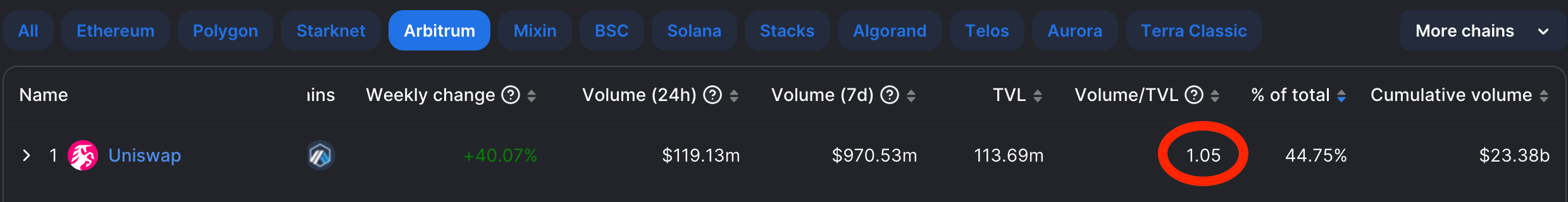 📈 Uniswap is the #1 DEX by volume on Arbitrum