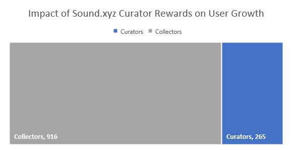 Curator Rewards on Sound allow anyone to earn 5% from every primary mint generated from their referral links. To date, 916 collectors have been referred to Sound by 265 curators, generating a total income of $65K for artists. Curators have also earned $3K in curation rewards, with Sound receiving $3.2K as well.